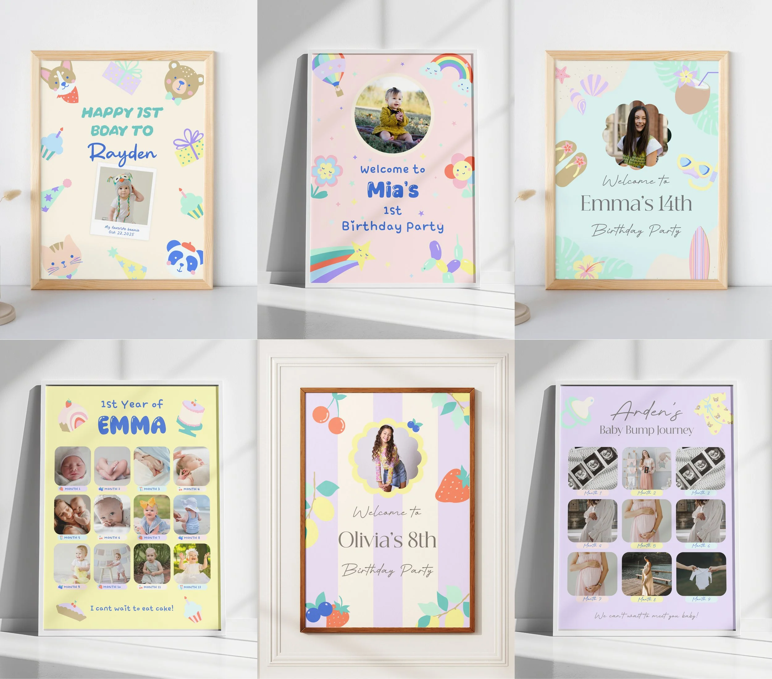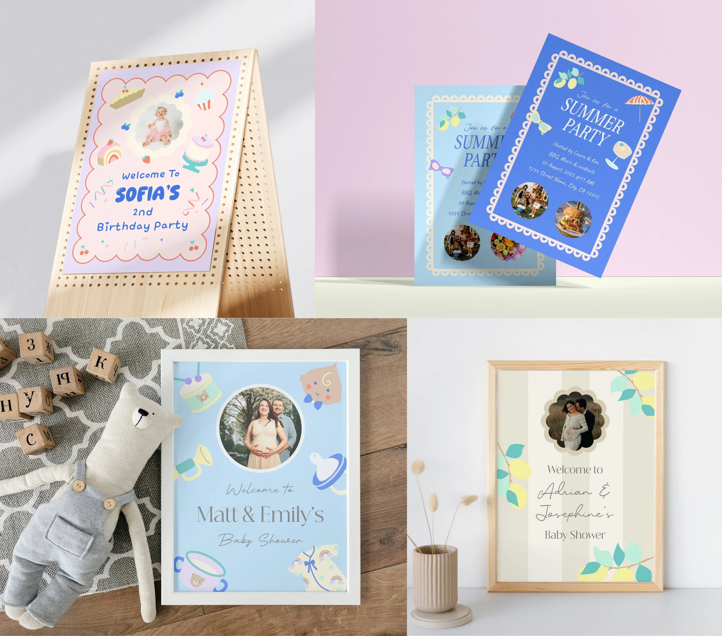 An event-template design project offering print and digital templates for children’s birthdays and baby showers. The collection features playful themes designed to make celebrating joyful and personal.